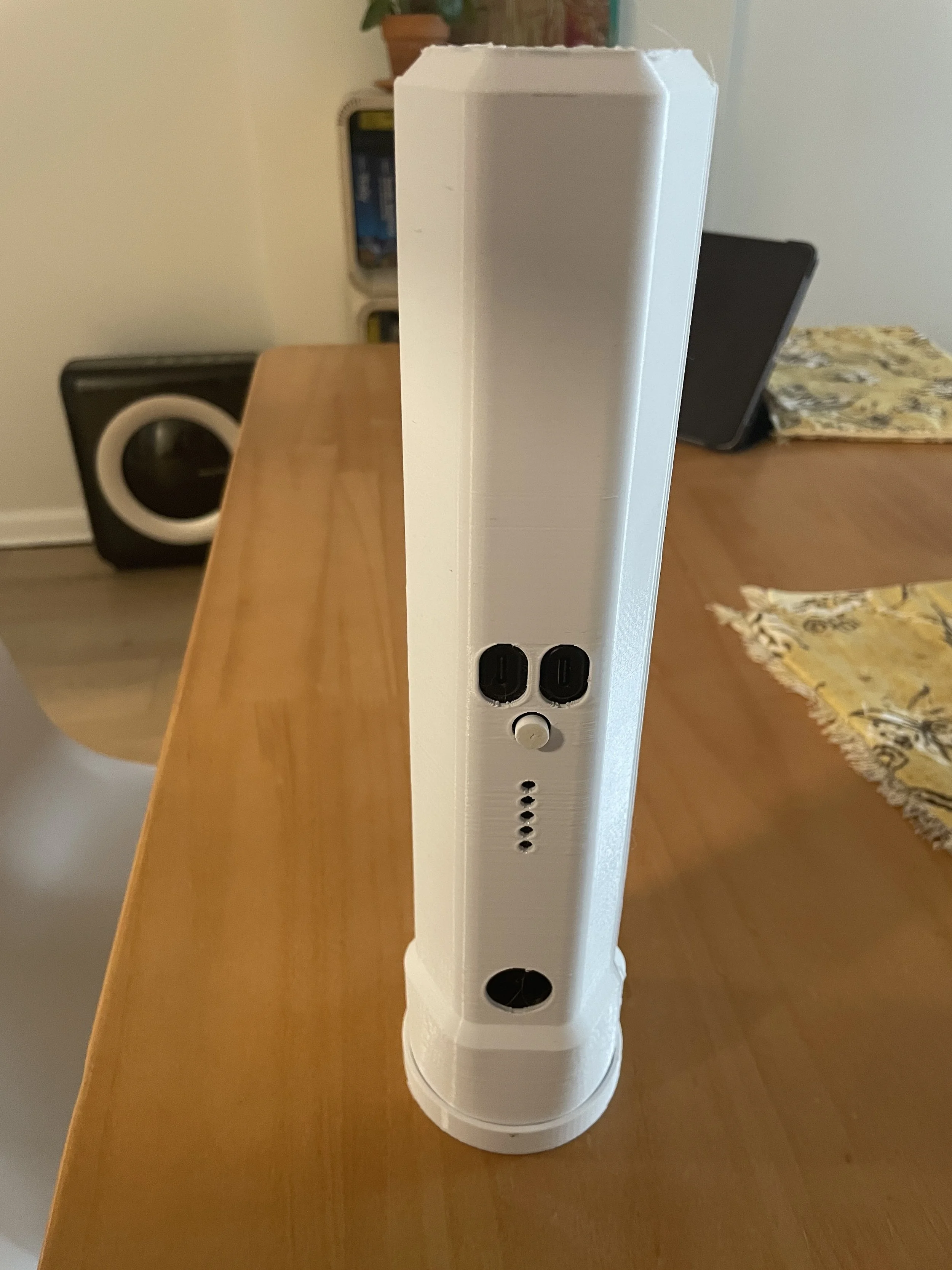 Final prototype was fully functional, with all electronics and controls secured and working. Enclosure and electronics all snap fit together with minimal hardware. Make sure to turn sound on for the video.
